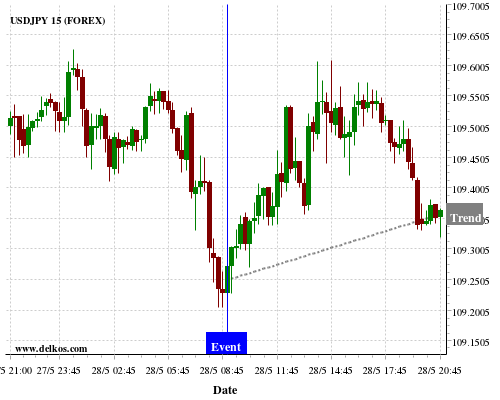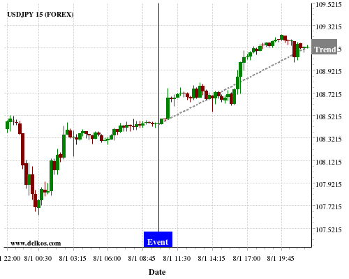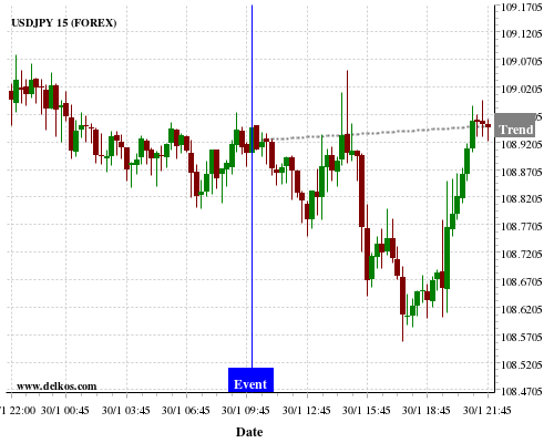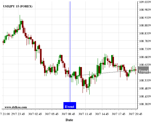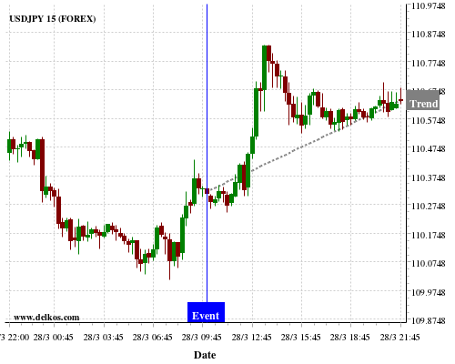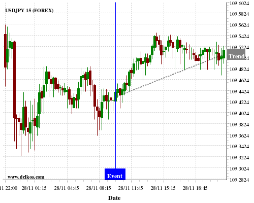 If the number is less than than economists’ consensus there is a 77.77% probability that USDJPY will trend up following the news event.