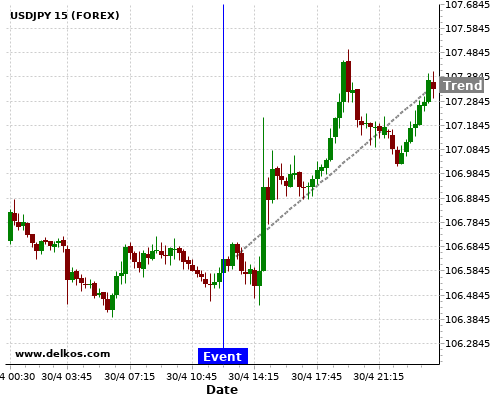 If the number is less than than economists’ consensus there is a 77.77% probability that USDJPY will trend up following the news event.