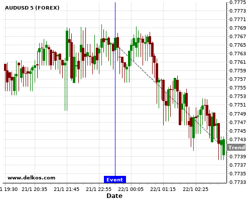 If the number is less than than economists’ consensus there is a 80% probability that AUDUSD will trend down following the news event.