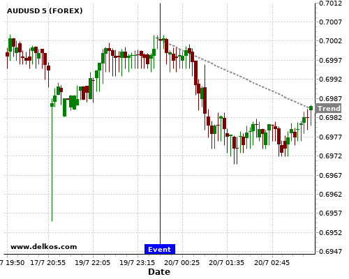 If the number is less than than economists’ consensus there is a 80% probability that AUDUSD will trend down following the news event.