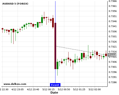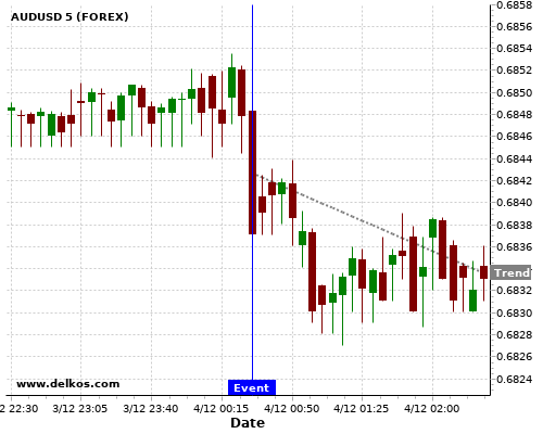If the number is less than than economists’ consensus there is a 80% probability that AUDUSD will trend down following the news event.
