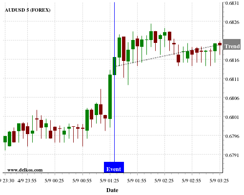 If the number is less than than economists’ consensus there is a 80% probability that AUDUSD will trend up following the news event.