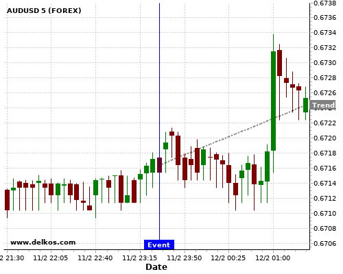 If the number is greater than than economists’ consensus there is a 80% probability that AUDUSD will trend up following the news event.