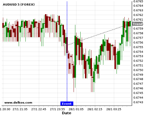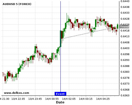 If the number is less than than economists’ consensus there is a 80% probability that AUDUSD will trend up following the news event.