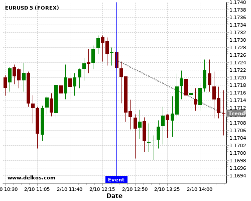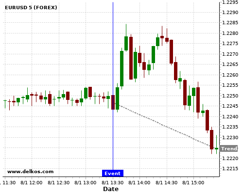 If the number is less than than economists’ consensus there is a 80% probability that EURUSD will trend down following the news event.