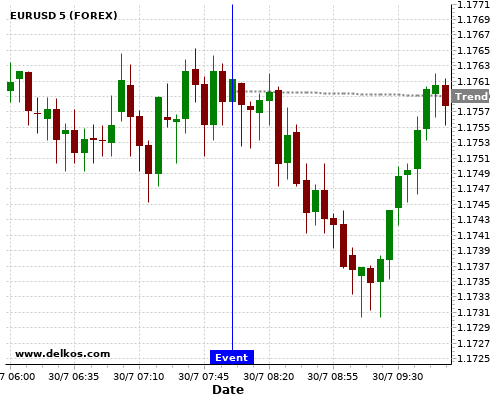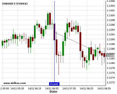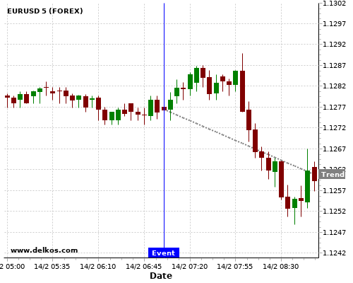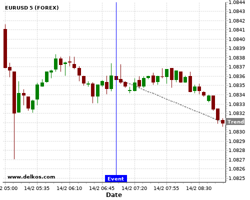 If the number is less than than economists’ consensus there is a 80% probability that EURUSD will trend down following the news event.
