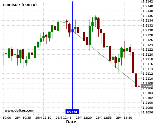 If the number is greater than than economists’ consensus there is a 80% probability that EURUSD will trend down following the news event.