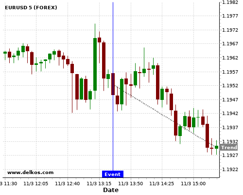 If the number is less than than economists’ consensus there is a 80% probability that EURUSD will trend down following the news event.