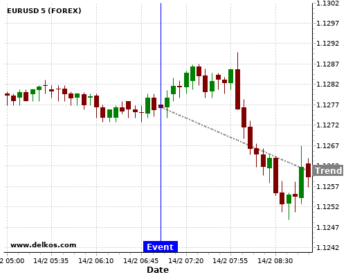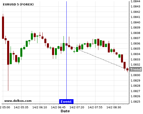 If the number is less than than economists’ consensus there is a 80% probability that EURUSD will trend down following the news event.