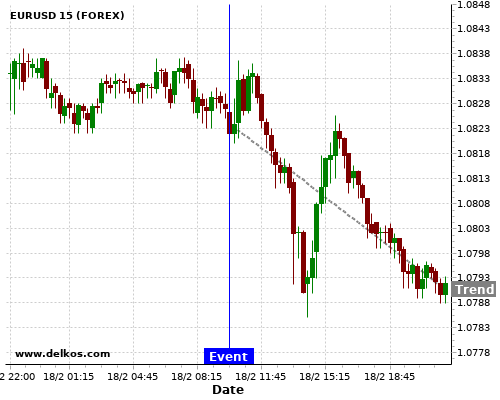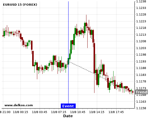 If the number is less than than economists’ consensus there is a 80% probability that EURUSD will trend down following the news event.