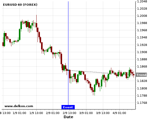 If the number is less than than economists’ consensus there is a 80% probability that EURUSD will trend down following the news event.