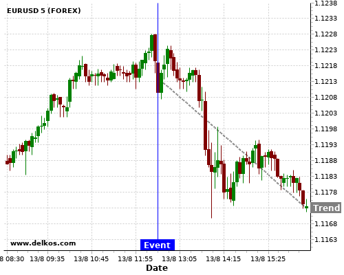 If the number is greater than than economists’ consensus there is a 80% probability that EURUSD will trend down following the news event.