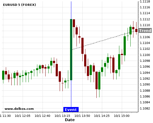 If the number is less than than economists’ consensus there is a 80% probability that EURUSD will trend up following the news event.