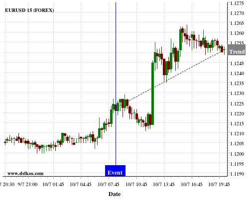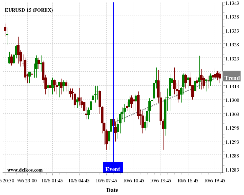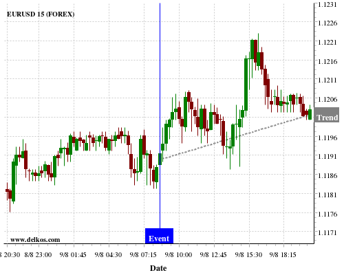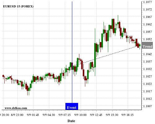 If the number is greater than than economists’ consensus there is a 80% probability that EURUSD will trend up following the news event.
