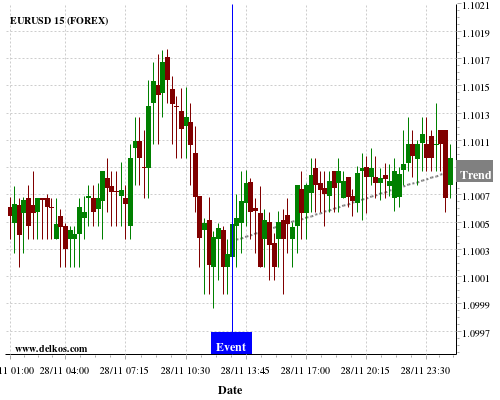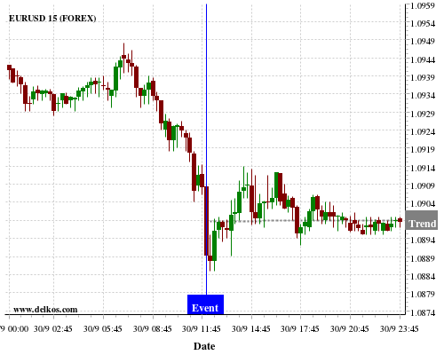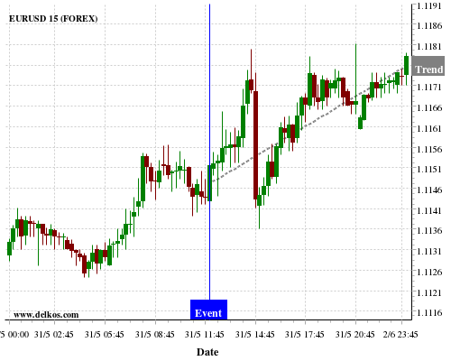 If the number is less than than economists’ consensus there is a 80% probability that EURUSD will trend up following the news event.