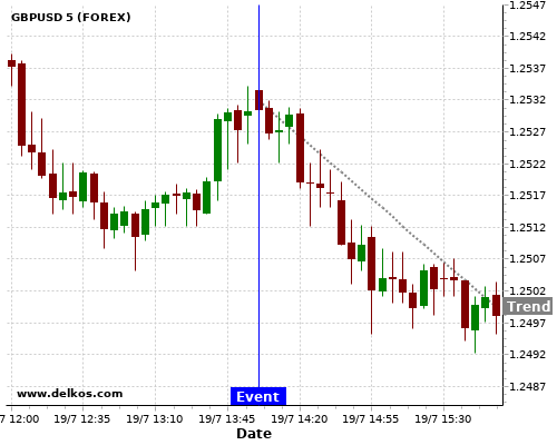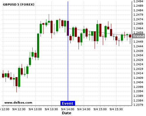 If the number is less than than economists’ consensus there is a 80% probability that GBPUSD will trend down following the news event.