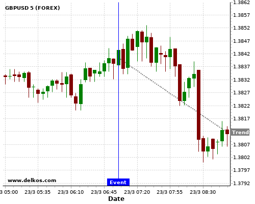 If the number is greater than than economists’ consensus there is a 80% probability that GBPUSD will trend down following the news event.