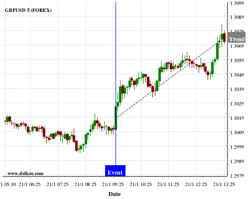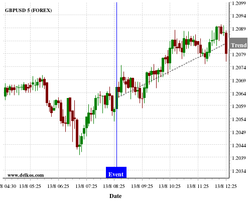 If the number is less than than economists’ consensus there is a 80% probability that GBPUSD will trend up following the news event.