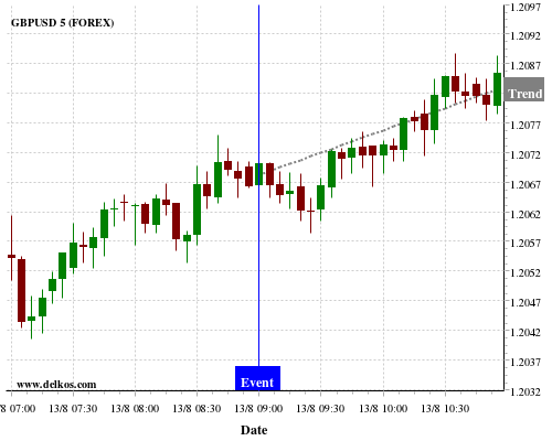 If the number is less than than economists’ consensus there is a 80% probability that GBPUSD will trend up following the news event.