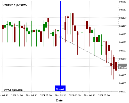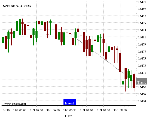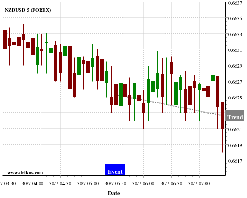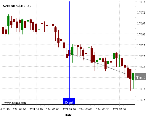 If the number is less than than economists’ consensus there is a 80% probability that NZDUSD will trend down following the news event.