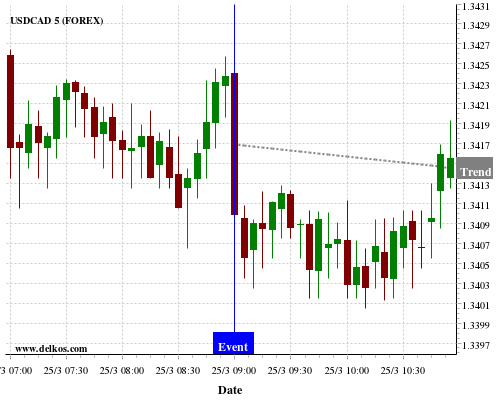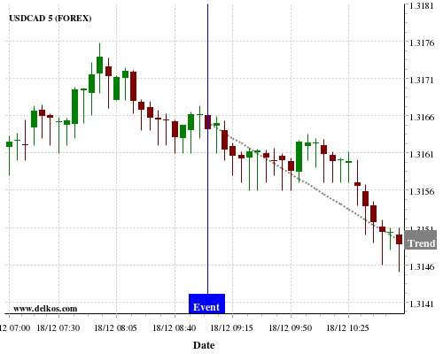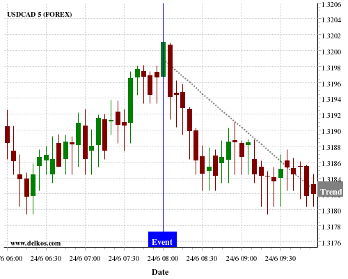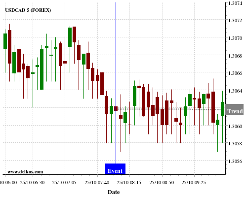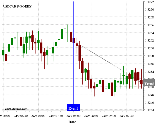 If the number is greater than than economists’ consensus there is a 80% probability that USDCAD will trend down following the news event.