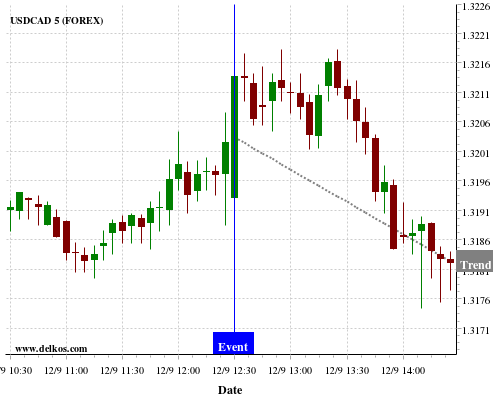 If the number is less than than economists’ consensus there is a 80% probability that USDCAD will trend down following the news event.