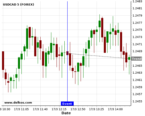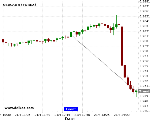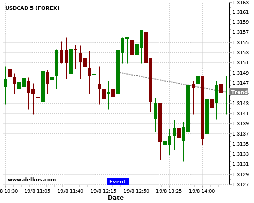 If the number is less than than economists’ consensus there is a 80% probability that USDCAD will trend down following the news event.
