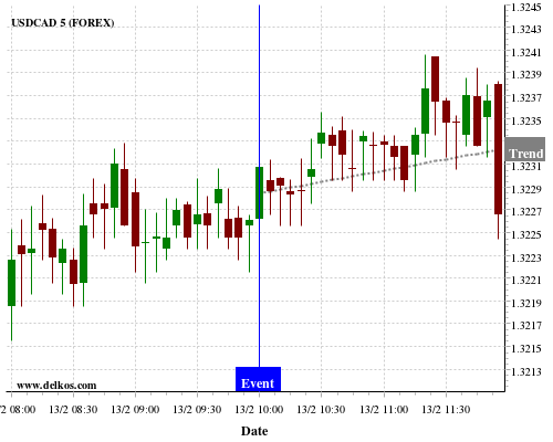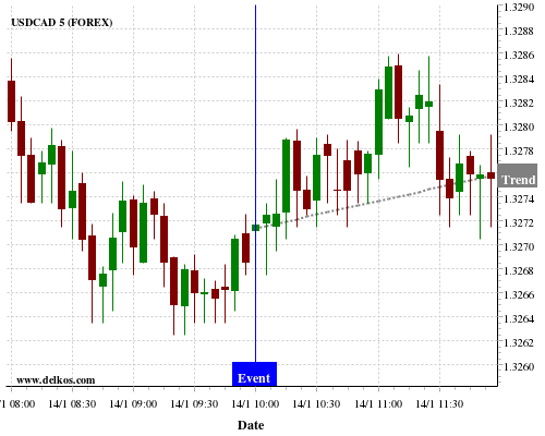 If the number is less than than economists’ consensus there is a 80% probability that USDCAD will trend up following the news event.