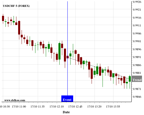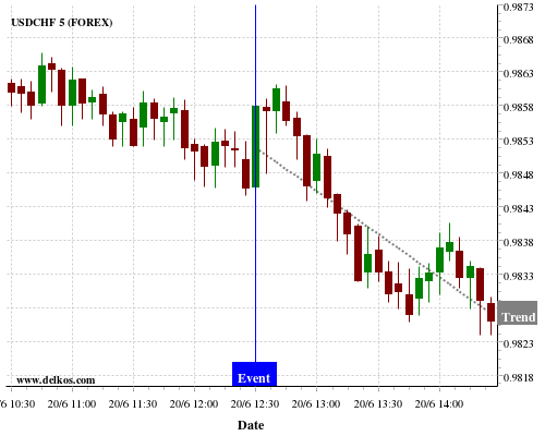 If the number is less than than economists’ consensus there is a 80% probability that USDCHF will trend down following the news event.