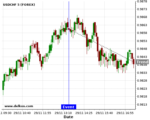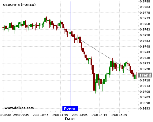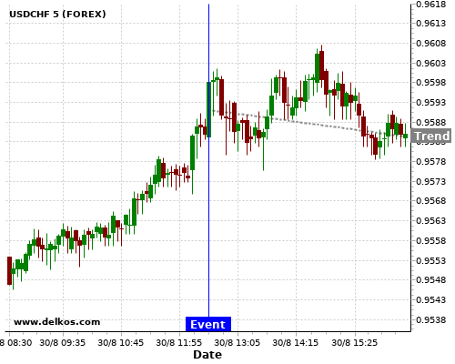 If the number is greater than than economists’ consensus there is a 80% probability that USDCHF will trend down following the news event.