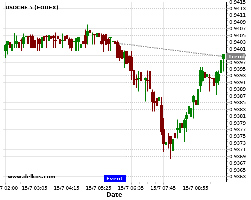 If the number is greater than than economists’ consensus there is a 80% probability that USDCHF will trend down following the news event.