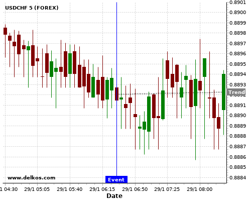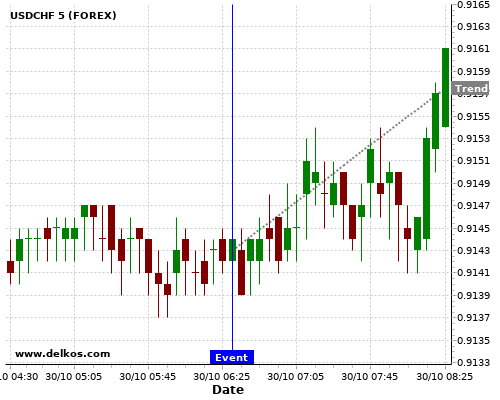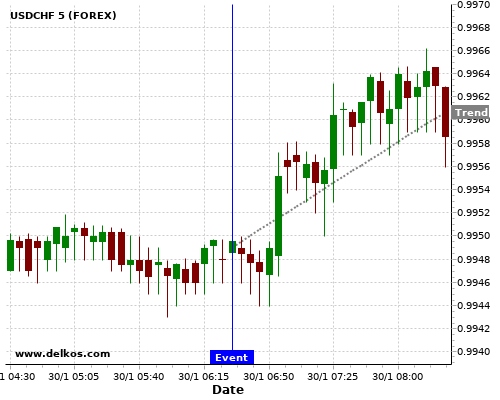 If the number is greater than than economists’ consensus there is a 80% probability that USDCHF will trend up following the news event.