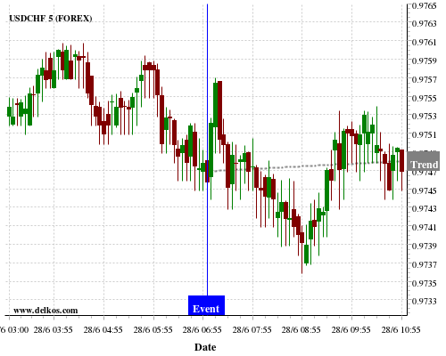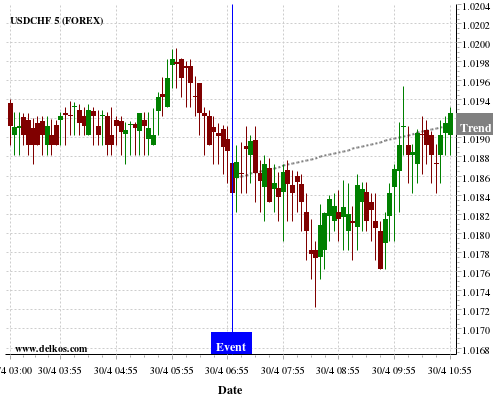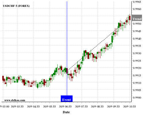 If the number is less than than economists’ consensus there is a 80% probability that USDCHF will trend up following the news event.