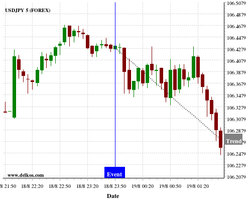 If the number is less than than economists’ consensus there is a 80% probability that USDJPY will trend down following the news event.