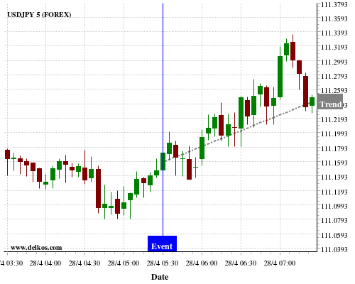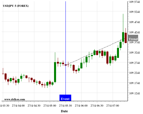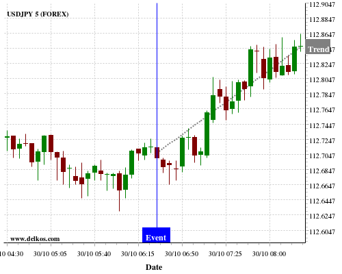 If the number is less than than economists’ consensus there is a 80% probability that USDJPY will trend up following the news event.