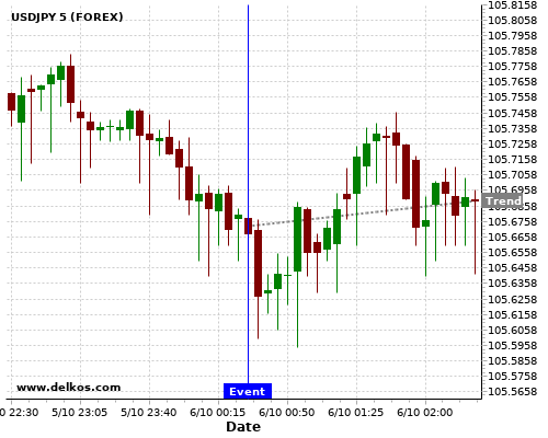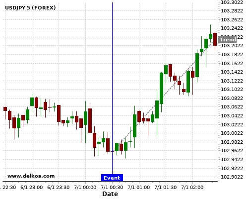 If the number is less than than economists’ consensus there is a 80% probability that USDJPY will trend up following the news event.