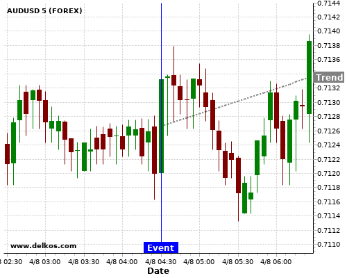 If the number is equal to than economists’ consensus there is a 81.81% probability that AUDUSD will trend up following the news event.