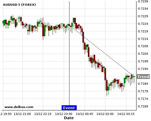 If the number is greater than than economists’ consensus there is a 83.33% probability that AUDUSD will trend down following the news event.