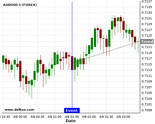 If the number is greater than than economists’ consensus there is a 83.33% probability that AUDUSD will trend up following the news event.