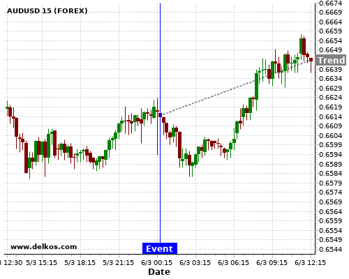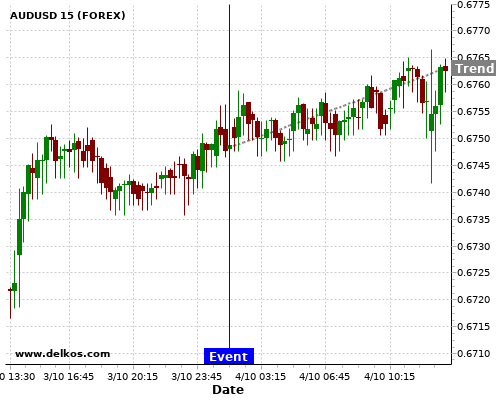 If the number is less than than economists’ consensus there is a 83.33% probability that AUDUSD will trend up following the news event.