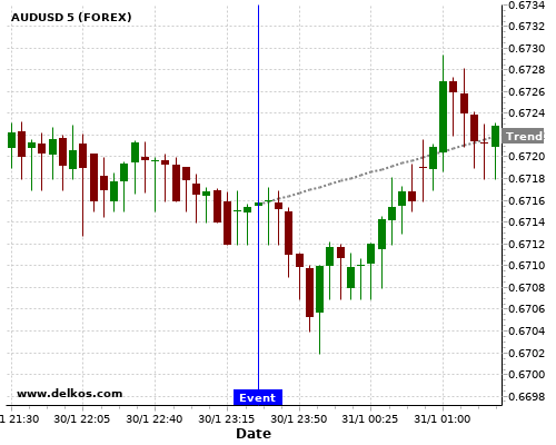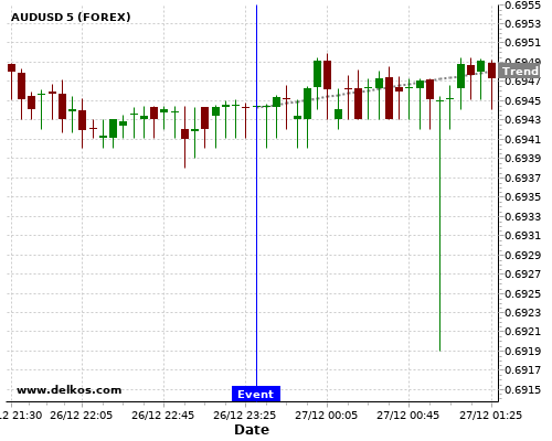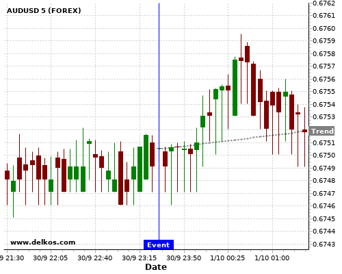If the number is less than than economists’ consensus there is a 83.33% probability that AUDUSD will trend up following the news event.