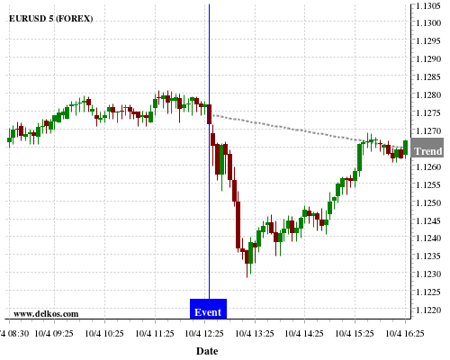 If the number is greater than than economists’ consensus there is a 83.33% probability that EURUSD will trend down following the news event.