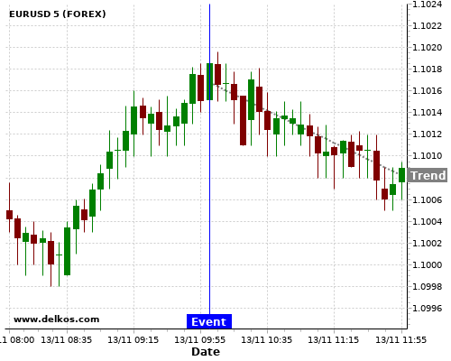 If the number is greater than than economists’ consensus there is a 83.33% probability that EURUSD will trend down following the news event.
