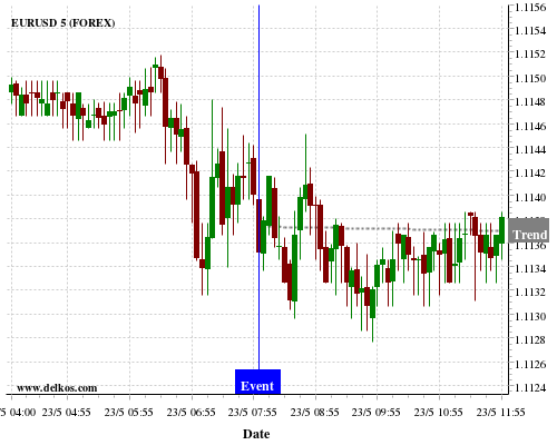 If the number is less than than economists’ consensus there is a 83.33% probability that EURUSD will trend down following the news event.