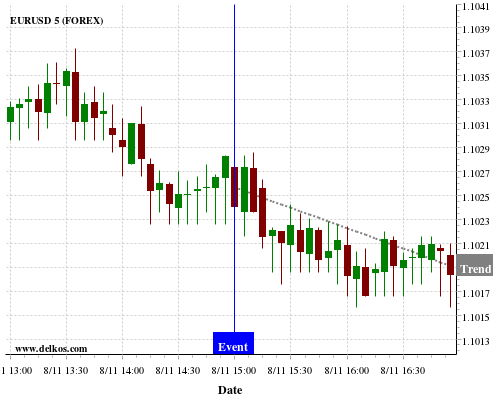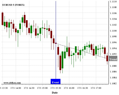 If the number is less than than economists’ consensus there is a 83.33% probability that EURUSD will trend down following the news event.