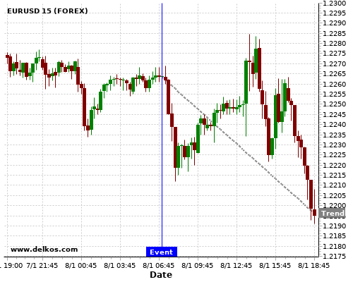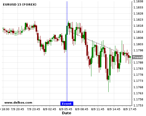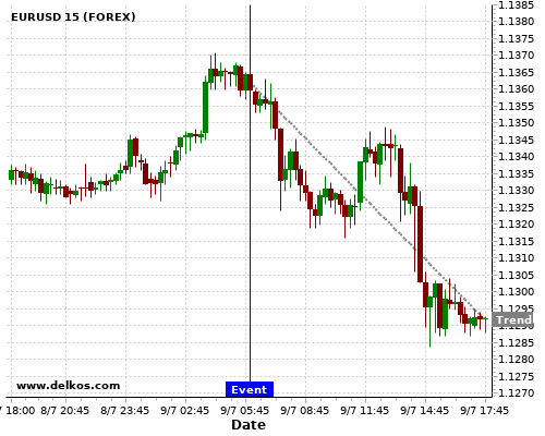If the number is less than than economists’ consensus there is a 83.33% probability that EURUSD will trend down following the news event.