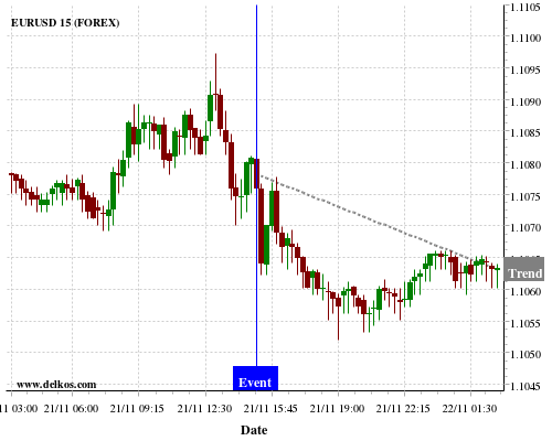 If the number is less than than economists’ consensus there is a 83.33% probability that EURUSD will trend down following the news event.