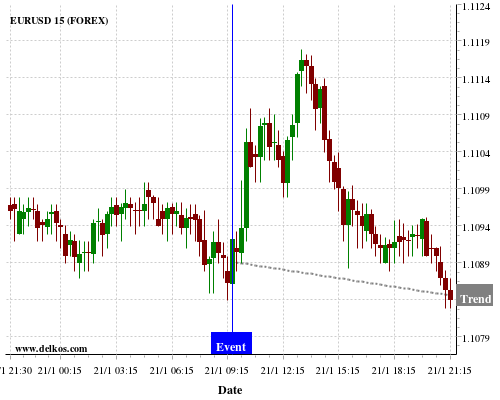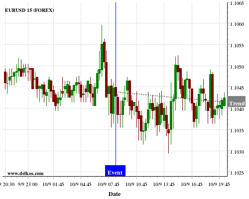 If the number is less than than economists’ consensus there is a 83.33% probability that EURUSD will trend down following the news event.