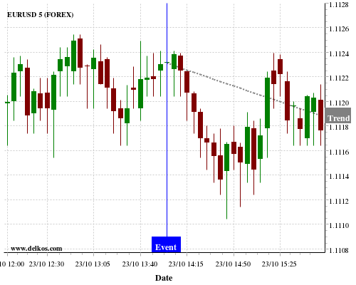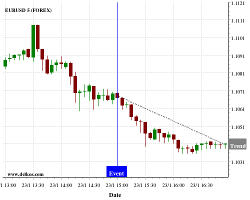 If the number is less than than economists’ consensus there is a 83.33% probability that EURUSD will trend down following the news event.