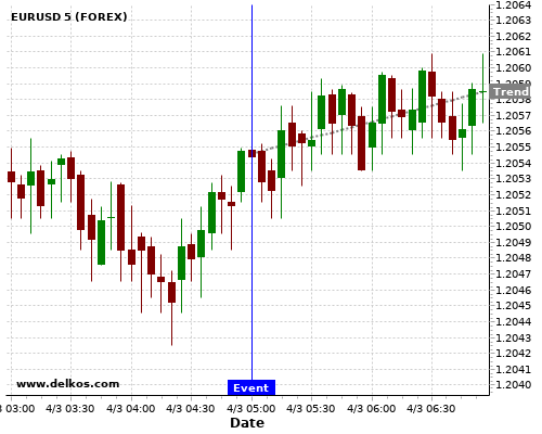 If the number is greater than than economists’ consensus there is a 83.33% probability that EURUSD will trend up following the news event.